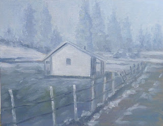 Did a winter scene for a change. Started with a photo from a friend of a tractor but once I started the scene I realized the fence, house, and misty light didn't need anything else. This is 9x12. Below is an 8x10 of a farm scene during the summer I did a few years ago for contrast.